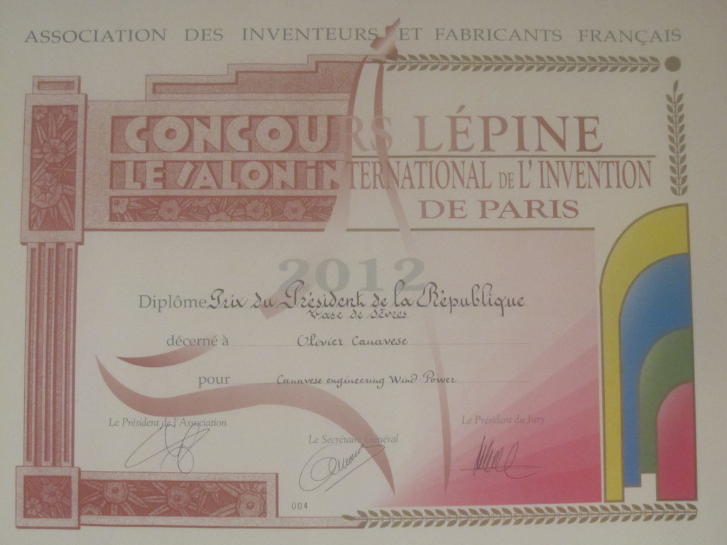 Le C.E Wind-Power a remporté les prix suivants au concours Lépine de Paris 2012: